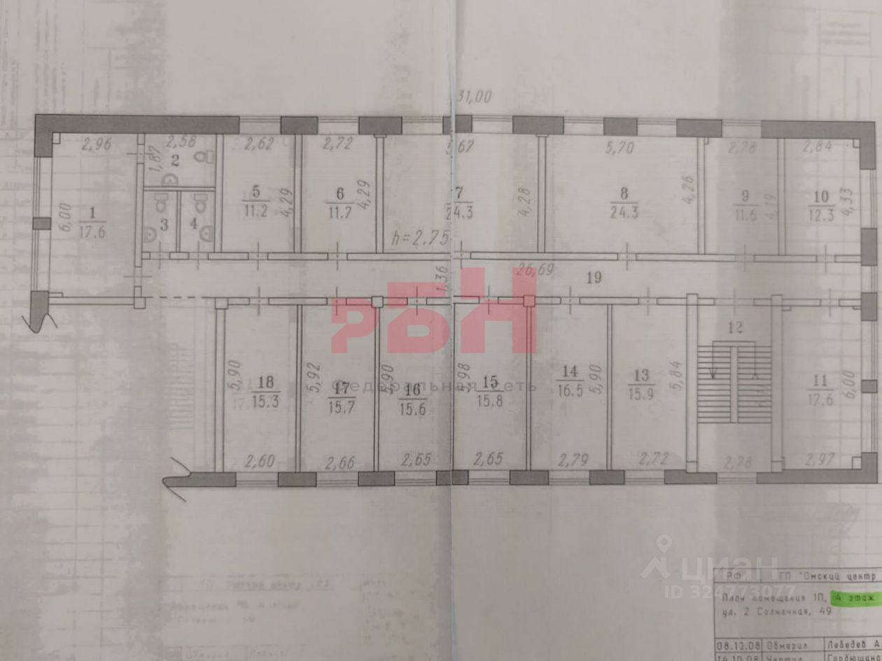 4- этаж - 308,3м2, в т.ч. МОП: 36,3м2 коридор