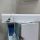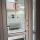 Комната для отдыха мастеров с местом для приема пищи, стиральной машиной и шкафами.