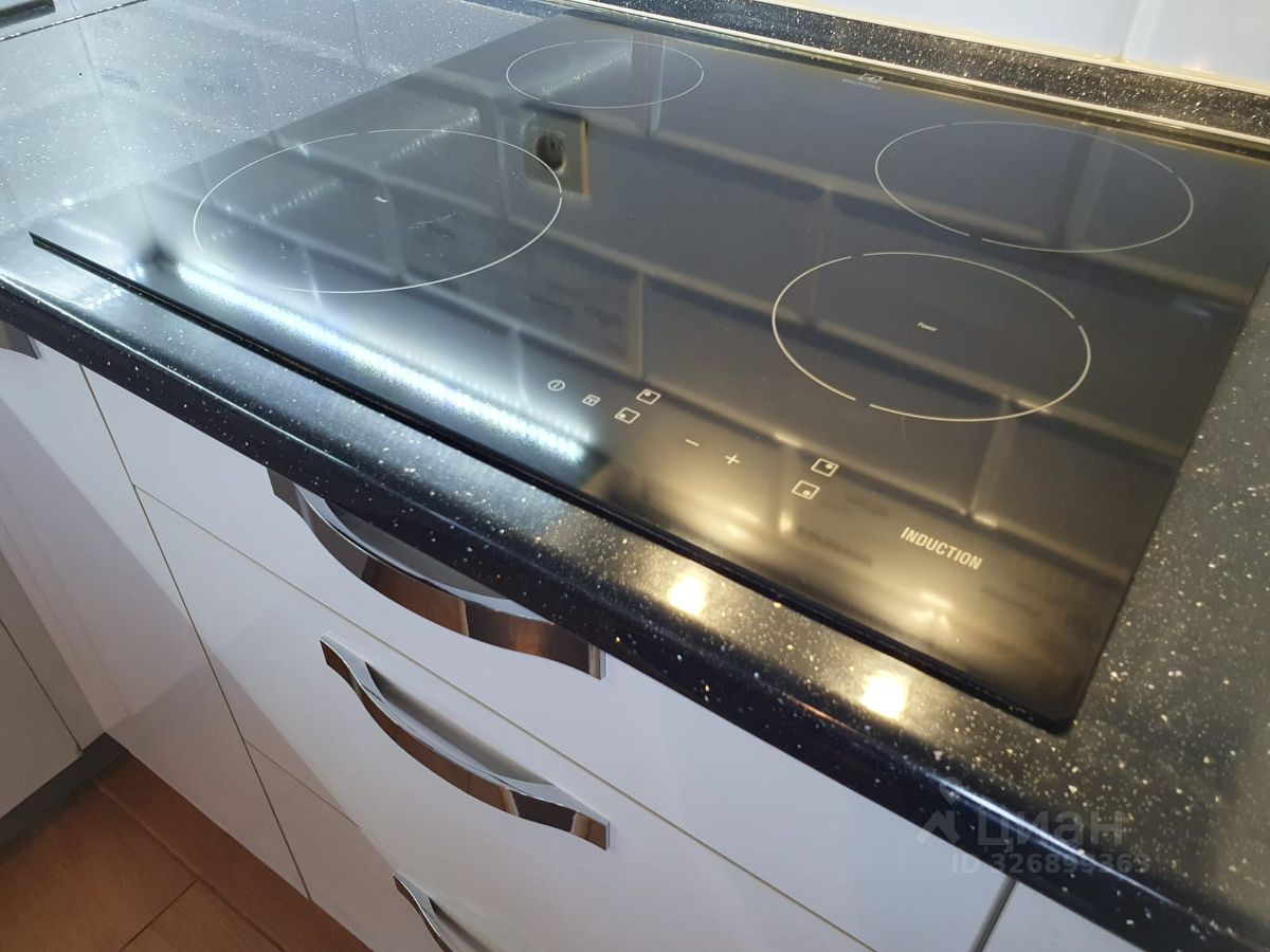 а также встроенная бытовая техника: варочная индукционная поверхность, вытяжка, духовой шкаф ZANUSSI,