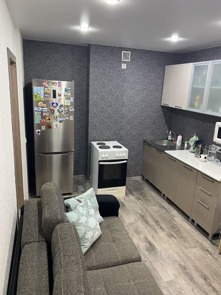 Год сдачи дома декабрь 2017г. Квартира свободной планировки - площадь при покупке по проекту была 39,38 кв.м. (см. последнее фото). Граммотное зонирование позволило создать функциональное и комфортное пространство - кухню и комнату примерно одинаковой площадью 13 кв.м. Просторный санузел в квартире истинное воплощение комфорта и функциональности. Его продуманная планировка позволит максимально эффективно использовать каждый квадратный метр пространства и разместить всю необходимую технику. У нас к сожалению так и не дошло дело до этого. Так же имеется достойных размеров остекленная лоджия, так же можно использовать как дополнительную зону по вашему усмотрению. В шаговой доступности остановки общественного транспорта, школы, в том числе технологический лицей ,,Авангард,, (относится по прописке), дет. сады, магазины различных категорий товаров: Магнит, Ермолино, Тюкалиночка, фрукты-овощи, канцелярия, зоо товары, пункты выдачи и отправки, аптеки и т.д. В доме имеется видеонаблюдение, всегда чистый, ухоженный подъезд, 2 лифта (в т.ч. грузовой), просторный тамбур у квартир. Во дворе отличная детская площадка, так же спортивное поле, огороженное забором (свой ключ). Агенства просьба пожалуйста не беспокоить! Обмен не интересует!