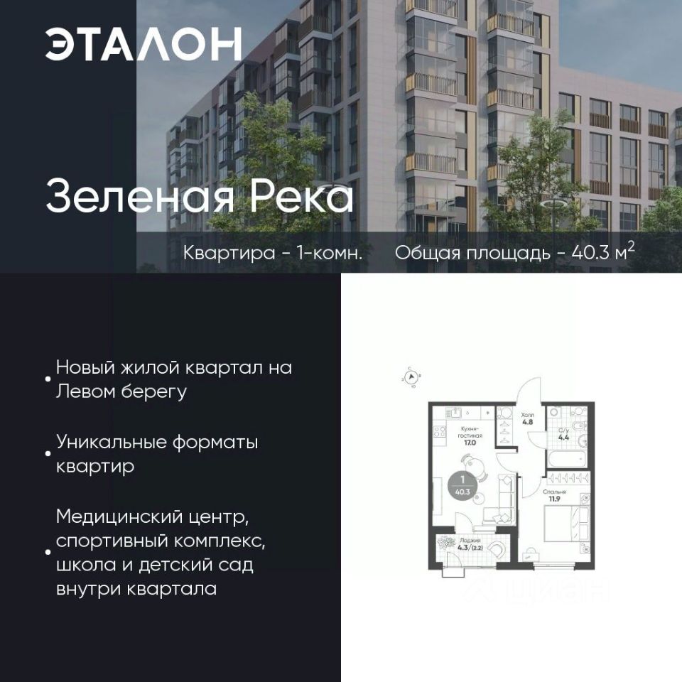 Продается квартира 334, по адресу г. Омск, ул. Волгоградская, корпус Зеленая река, 2 очередь, корпус 3 в Зеленая Река на 8 этаже, с площадью 40.3 м2.