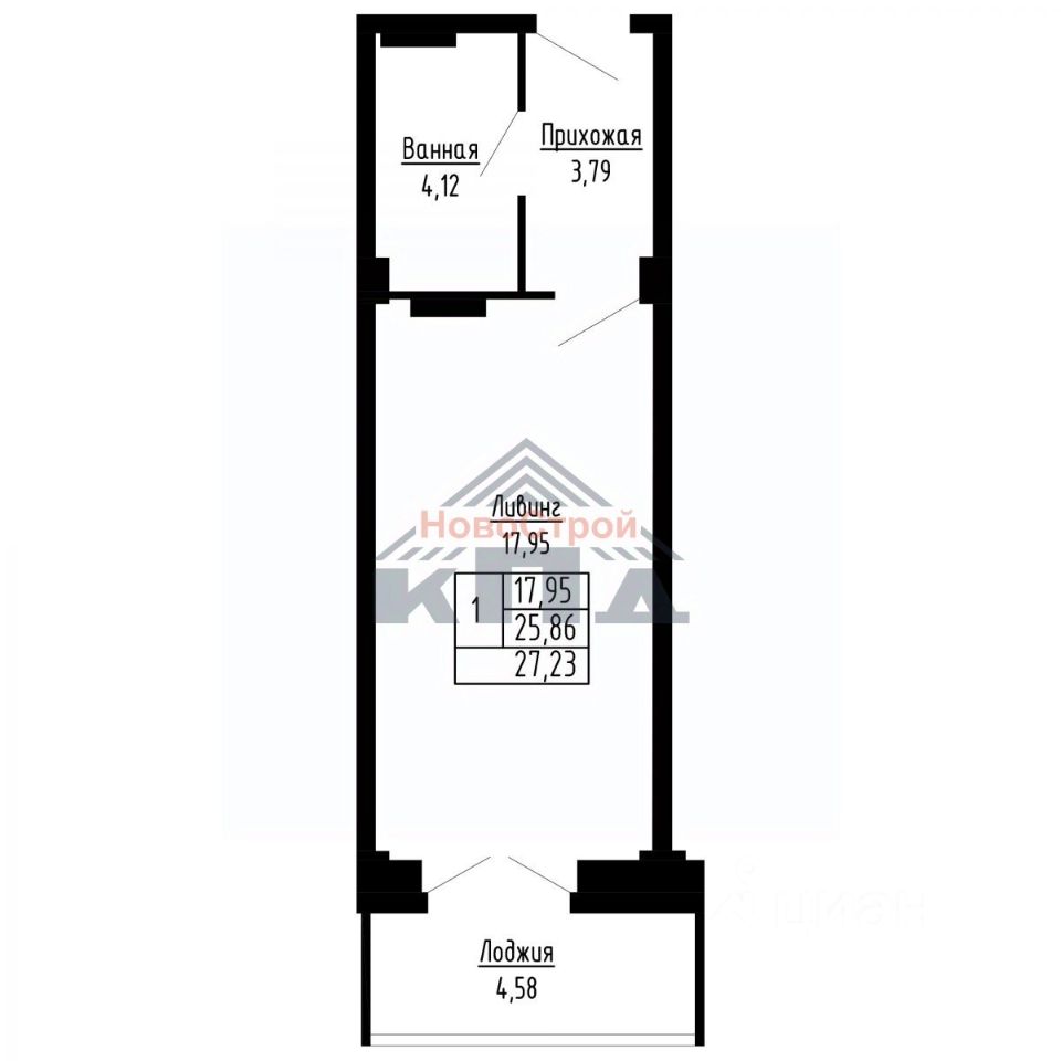 1-комнатная квартира, 27 м²