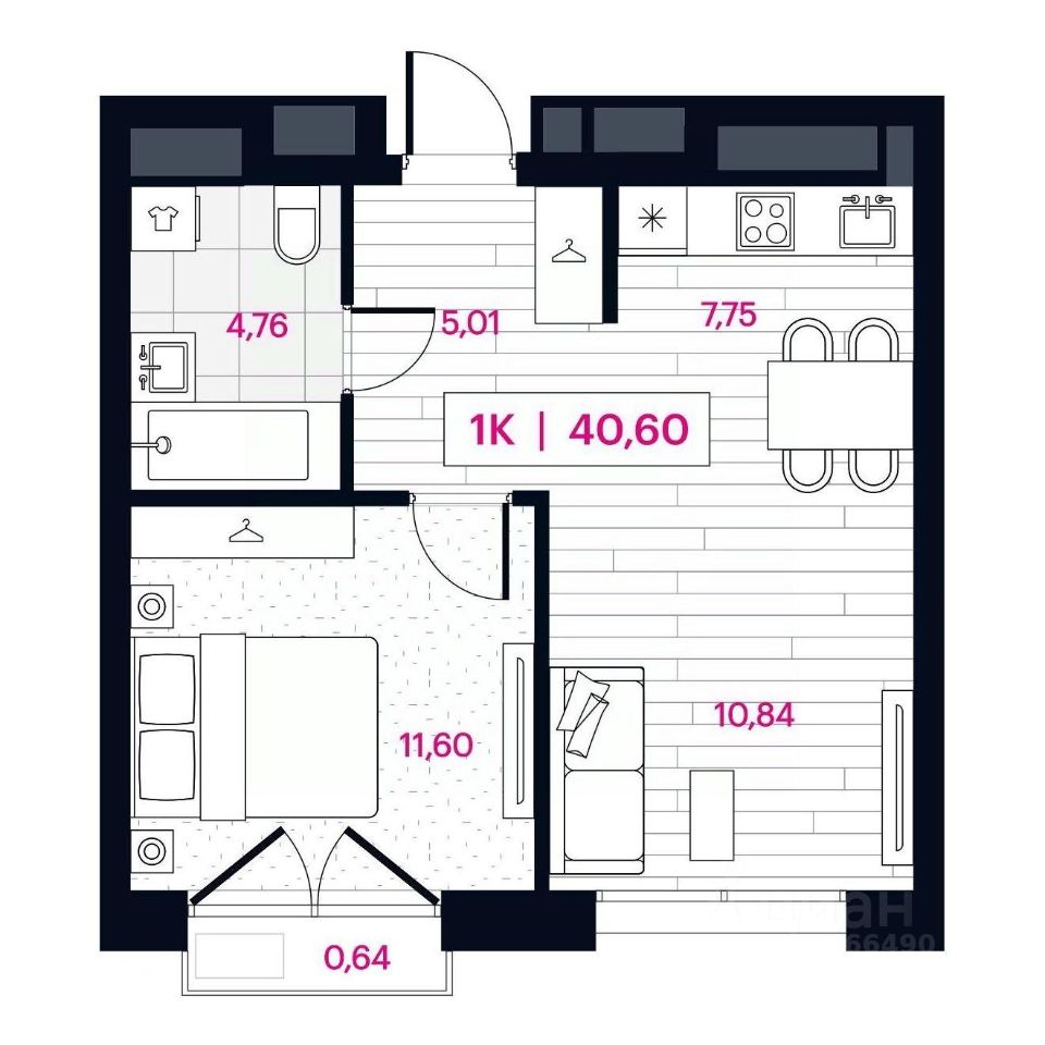 | Площадь общая | 40.6 м² |