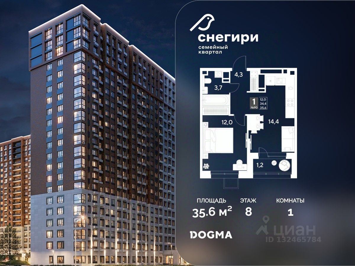 Срок сдачи: 4 кв. 2027, общей площадью 35.6 кв.м., на 8 этаже.