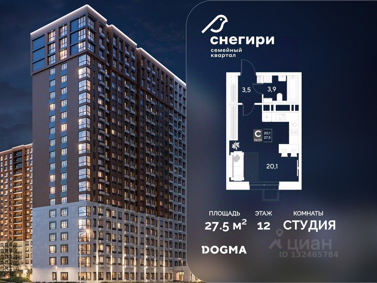 Срок сдачи: 4 кв. 2027, общей площадью 27.5 кв.м., на 12 этаже.