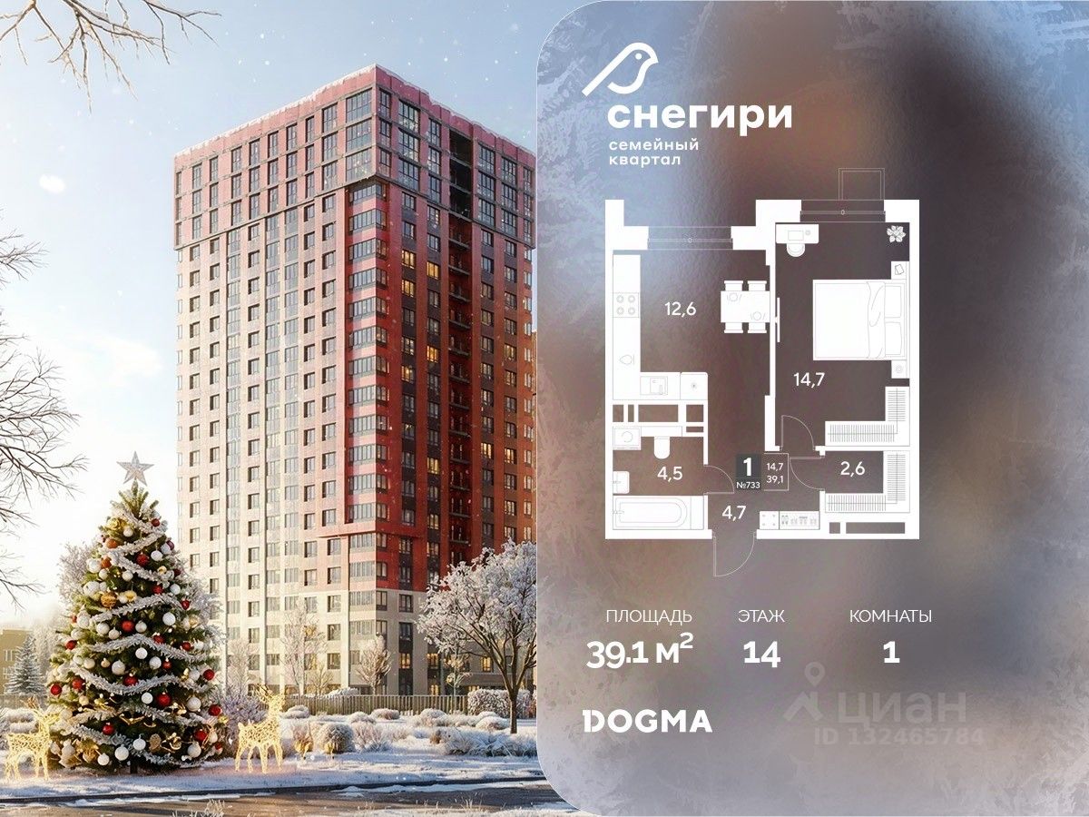 В продаже 1-комнатная квартира от застройщика DOGMA! ЖК ''Снегири'', г. Омск, Литер 1 Срок сдачи: (4 кв. 2027, общей площадью 39.1 кв.м., на 14 этаже.) Район для счастливой жизни