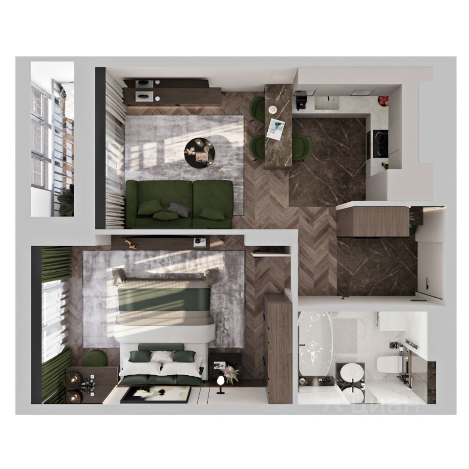 Продаётся 1-комнатная квартира в строящемся доме (Дом 1), срок сдачи: I-кв. 2027, общей площадью 44.23 кв.м., на 11 этаже.