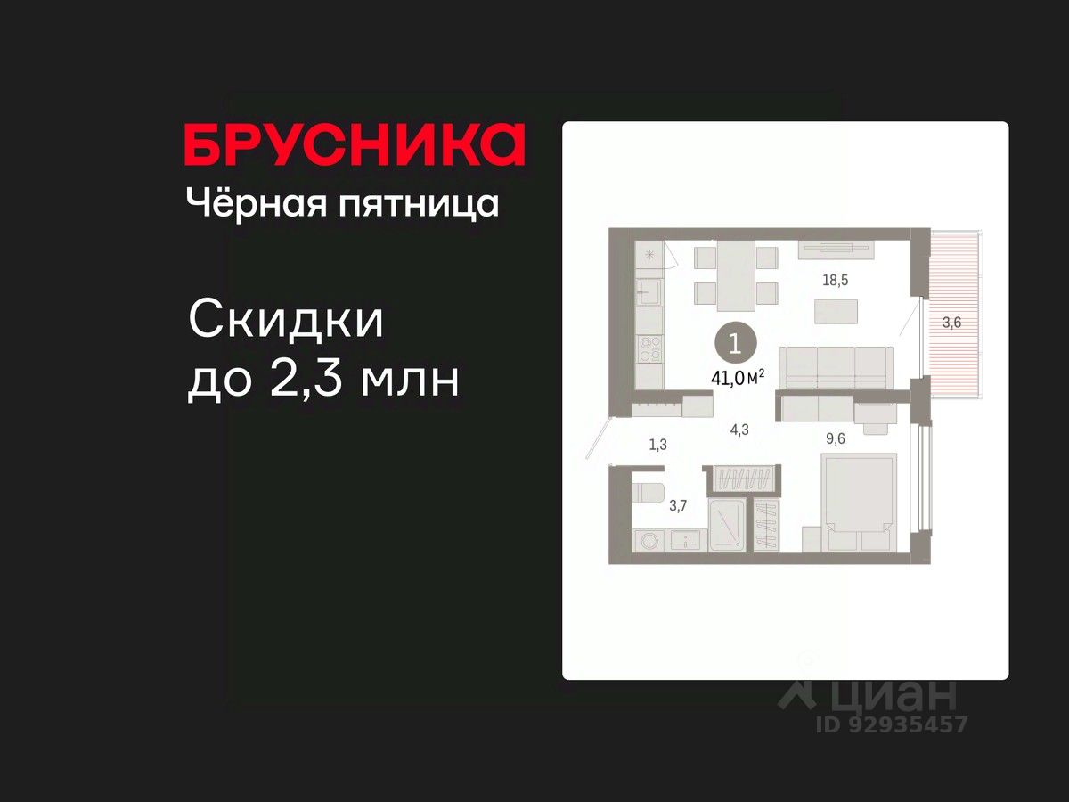 1-комн. квартира от застройщика с предчистовой отделкой в Кварталы Драверта на 6 этаже. Общая площадь: 40.99 кв.м. Высота потолков 2.82 м.
