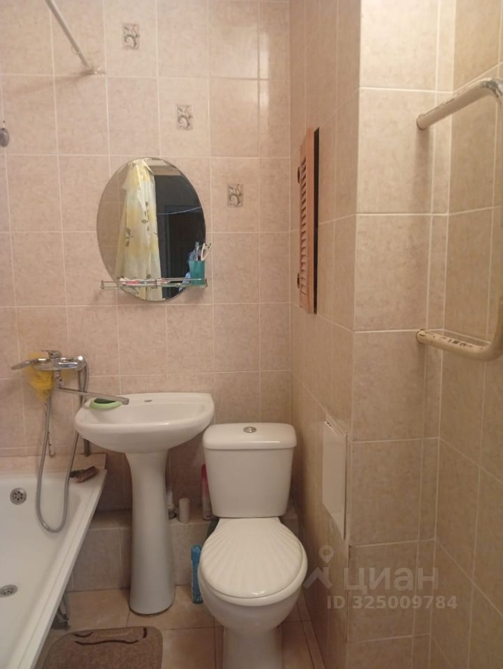 Санузел совмещённый, отделанный кафельной плиткой.