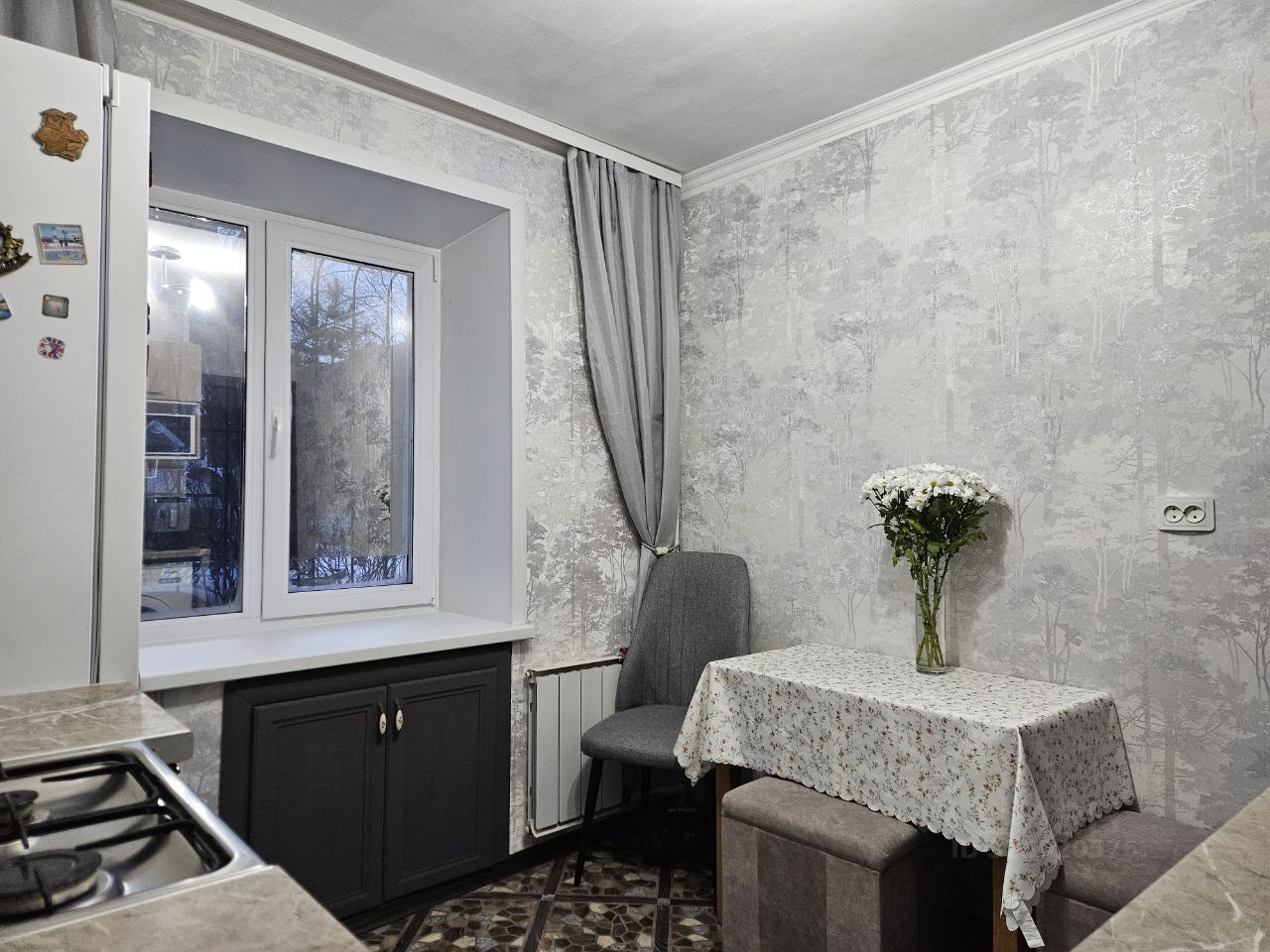 Кухня с гарнитуром, санузел совмещённый, отделка плиткой, установлена чугунная ванна. Есть застеклённый балкон - удобно для хранения и как дополнительное пространство для отдыха.