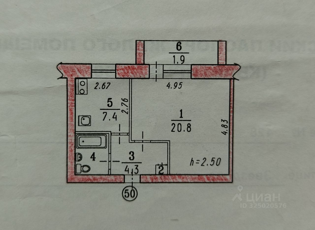 Продаётся 1-комнатная квартира 36.4 м² в кирпичном доме.