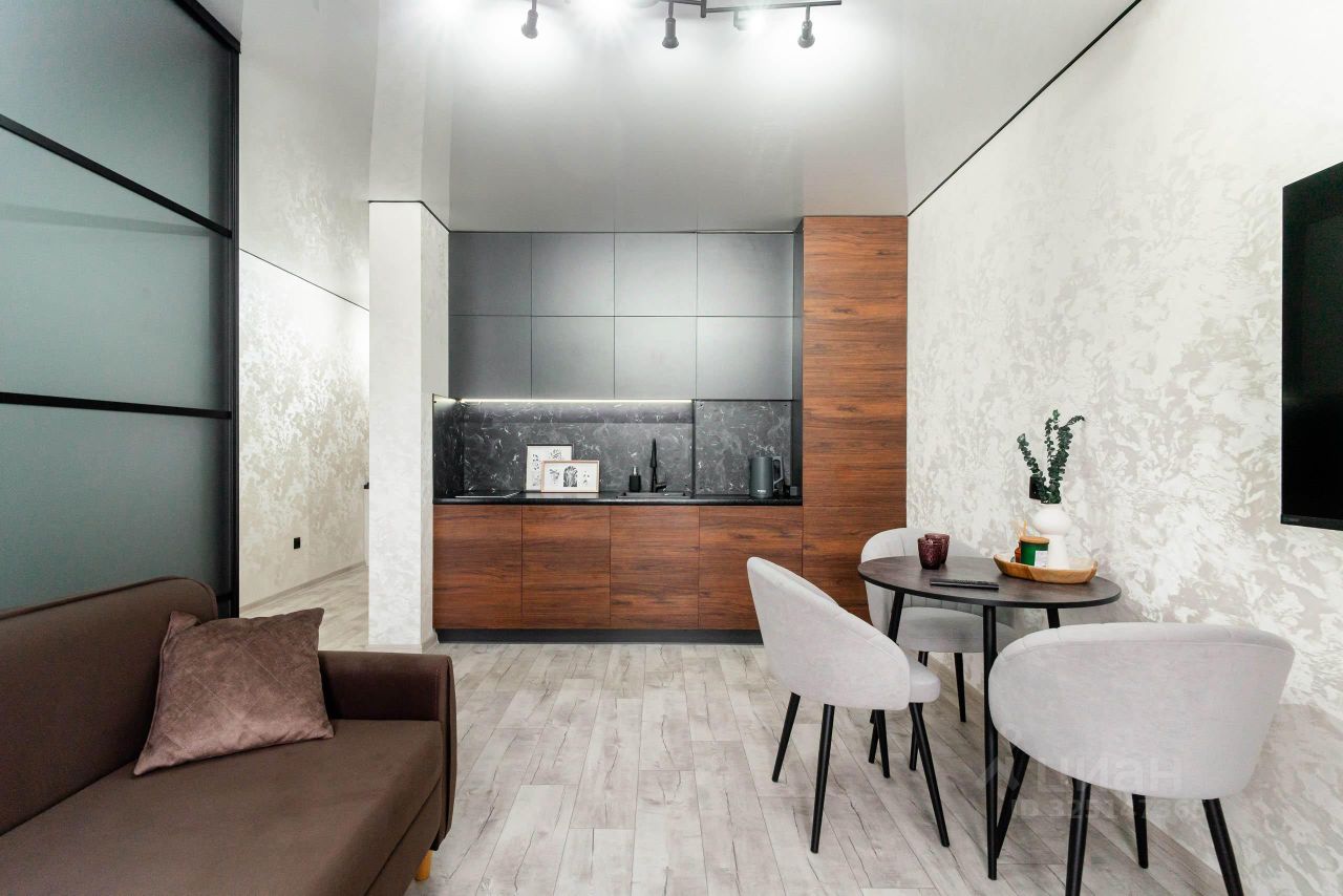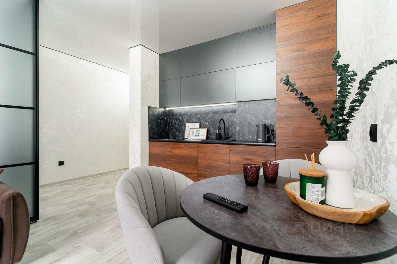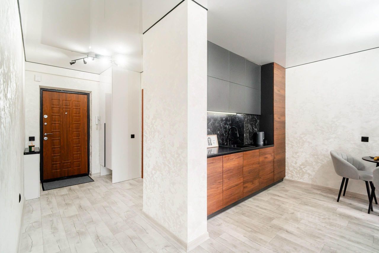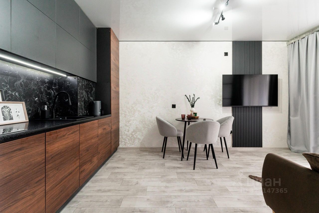 -выделенная зона кухни с кухонным гарнитуром, который соответствует последним модным тенденциям.