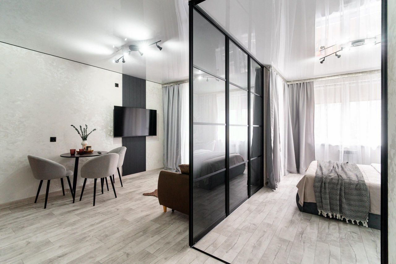 Благодаря продуманному планировочному решению в квартире достаточно места, а грамотное распределение пространства позволило выделить отдельную спальню для комфортного отдыха, которую при необходимости можно объединять с зоной гостиной.