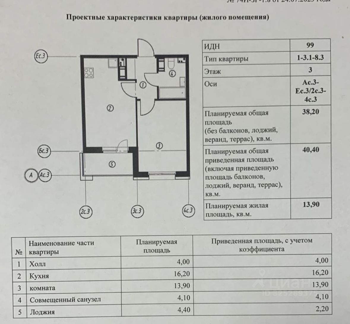 Общая площадь квартиры- 38,4