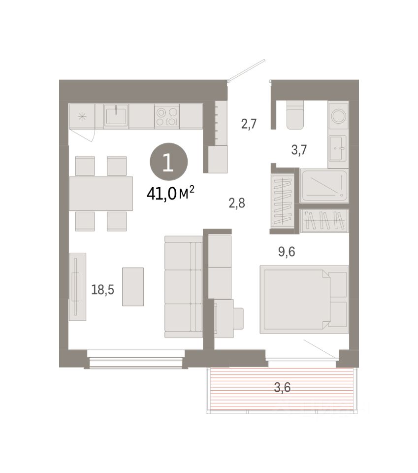 1-комн. квартира от застройщика с предчистовой отделкой в Кварталы Драверта на 3 этаже. Общая площадь: 40.98 кв.м. Высота потолков 2.82 м.