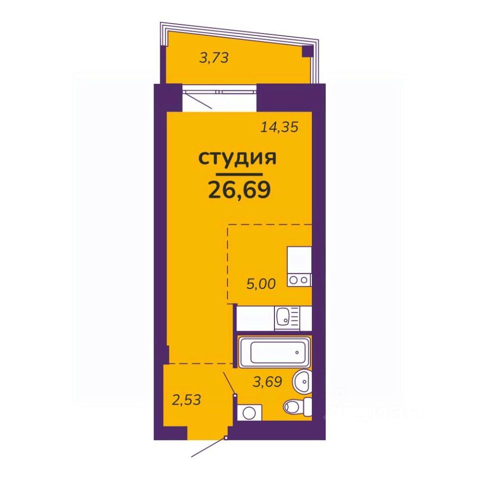 Площадь общая26.7 м²