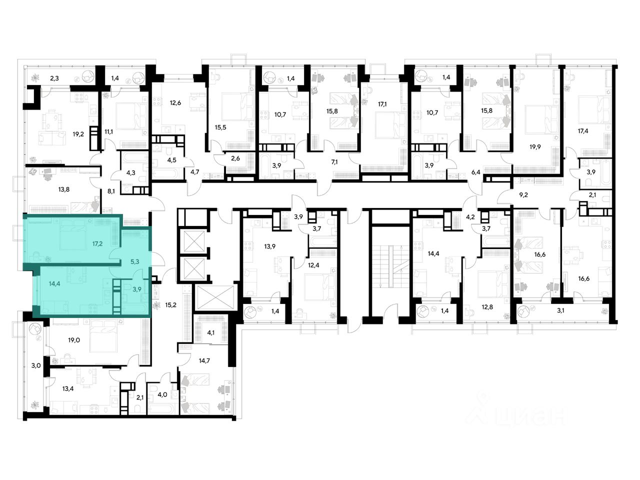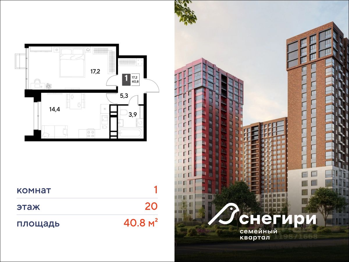 ЖК ''Снегири'', г. Омск, корпус 1 Срок сдачи: (4 кв. 2027, общей площадью 40.8 кв.м., на 20 этаже.)