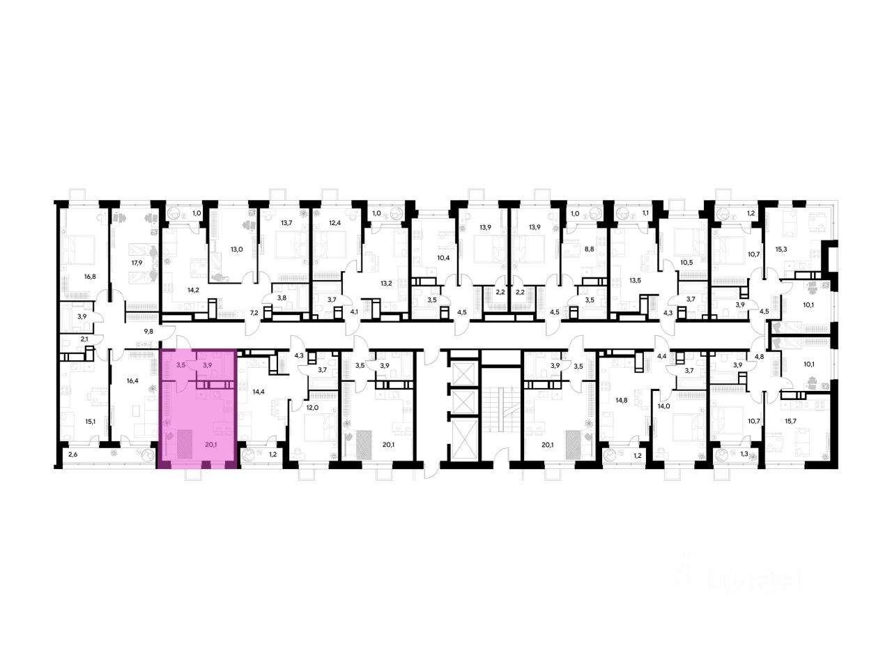 Площадь жилая20.1 м²