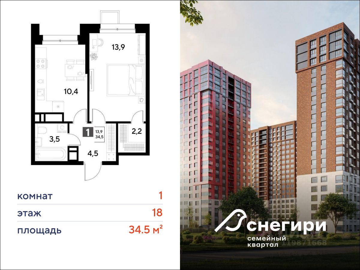 ЖК ''Снегири'', г. Омск, корпус 1 Срок сдачи: (4 кв. 2027, общей площадью 34.5 кв.м., на 18 этаже.)
