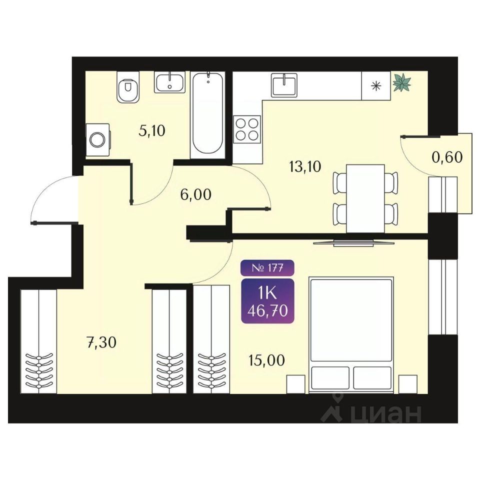 Площадь общая46.7 м²