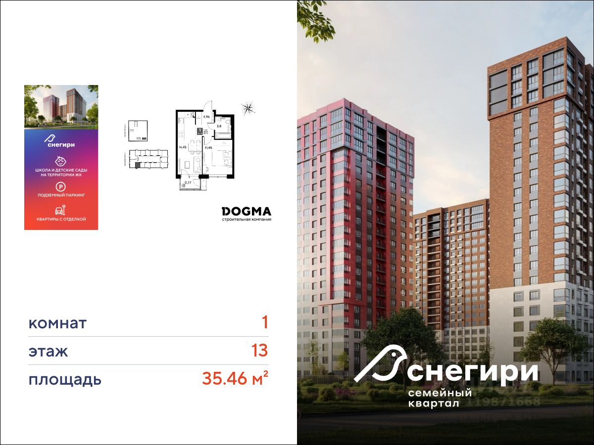 ЖК ''Снегири'', г. Омск, корпус МЖД 3 Срок сдачи: (4 кв. 2027, общей площадью 35.46 кв.м., на 13 этаже.)