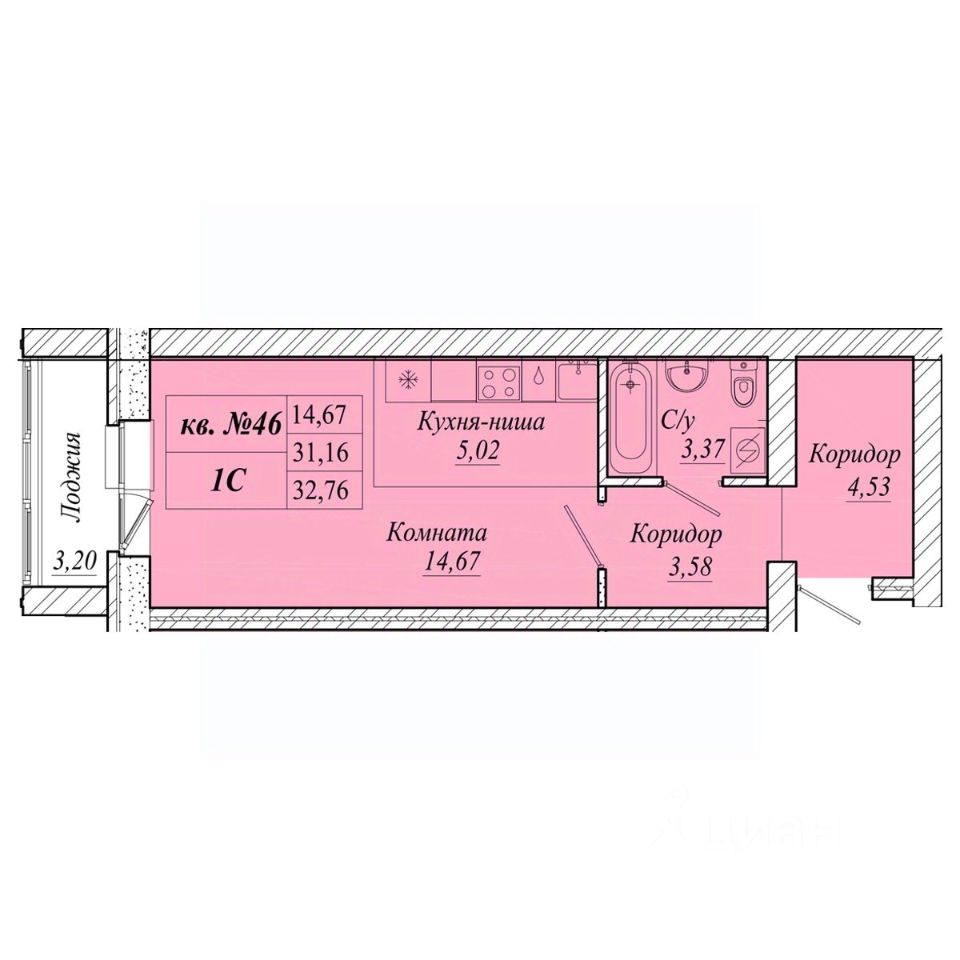 Площадь общая32.8 м²