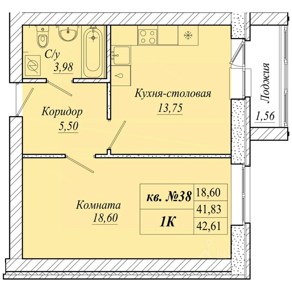 | Площадь общая | 42.6 м² |