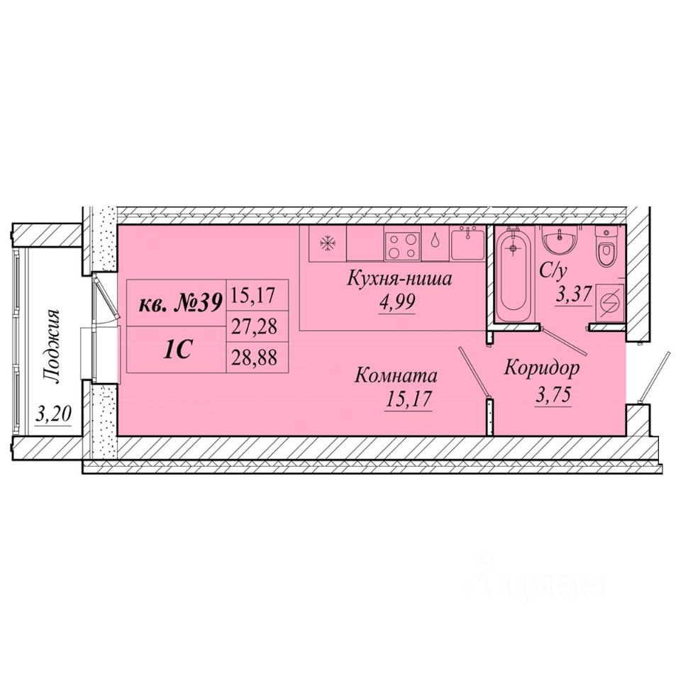 | Площадь общая | 28.9 м² |