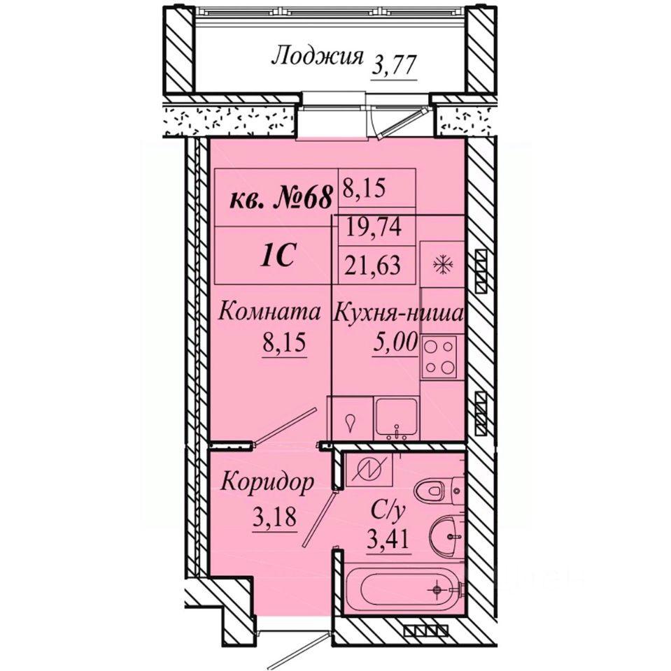 | Площадь общая | 21.6 м² |