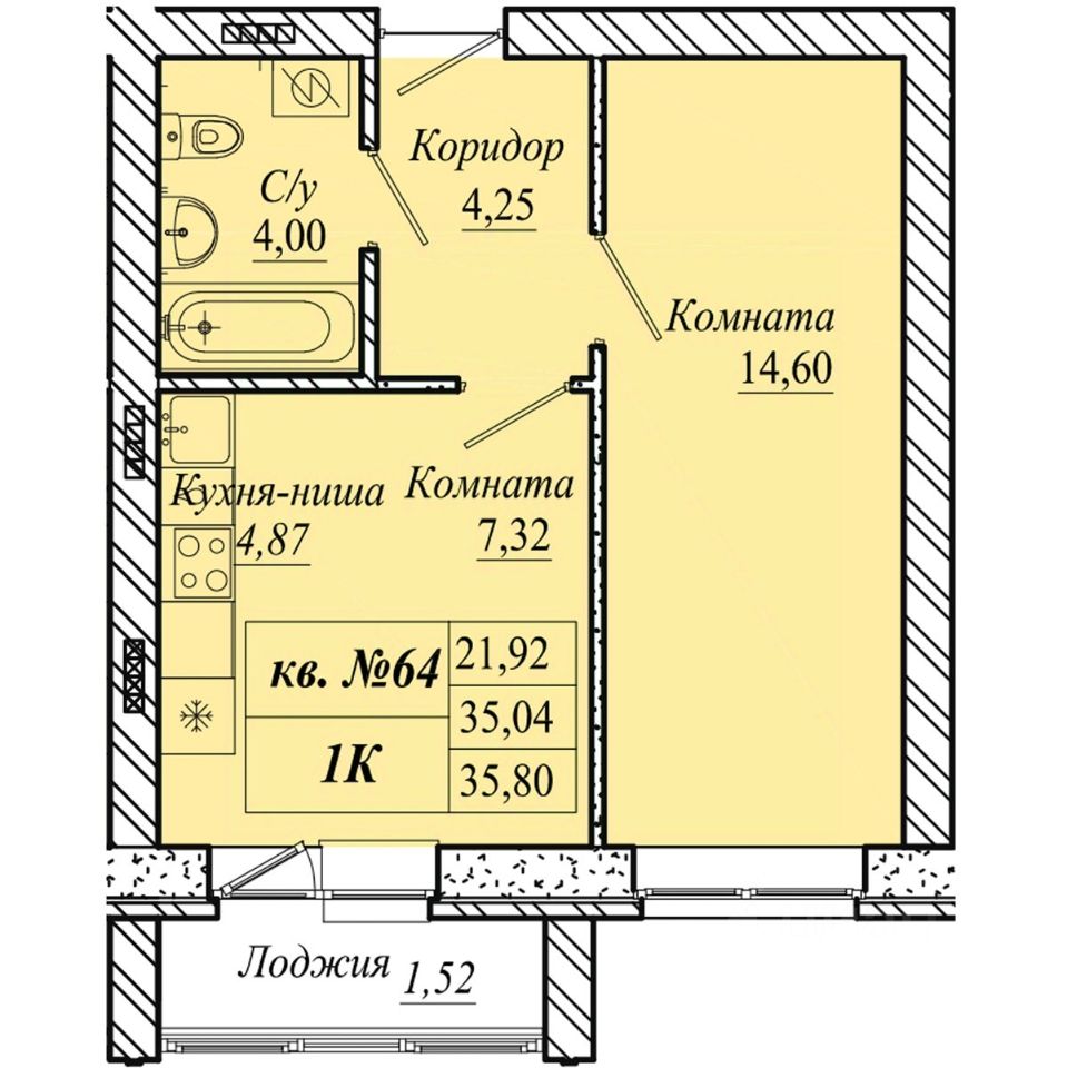 | Площадь общая | 35.8 м² |