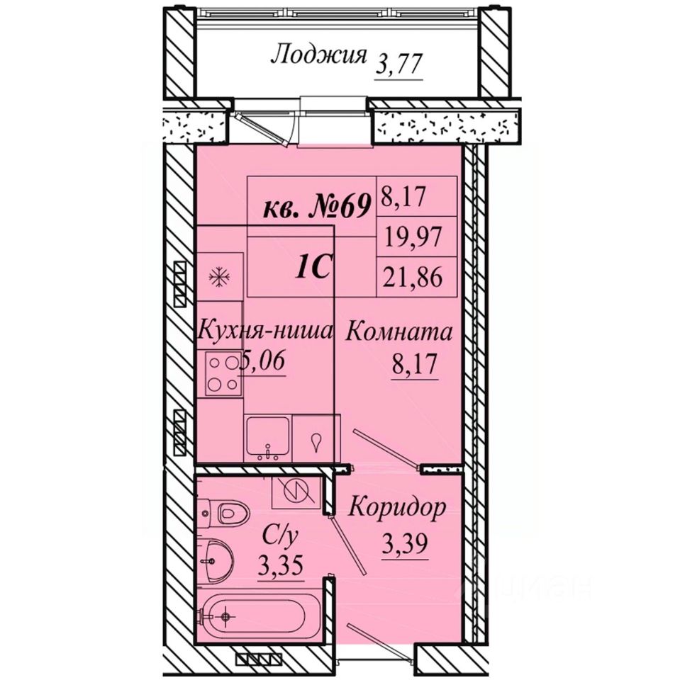 | Площадь общая | 21.9 м² |