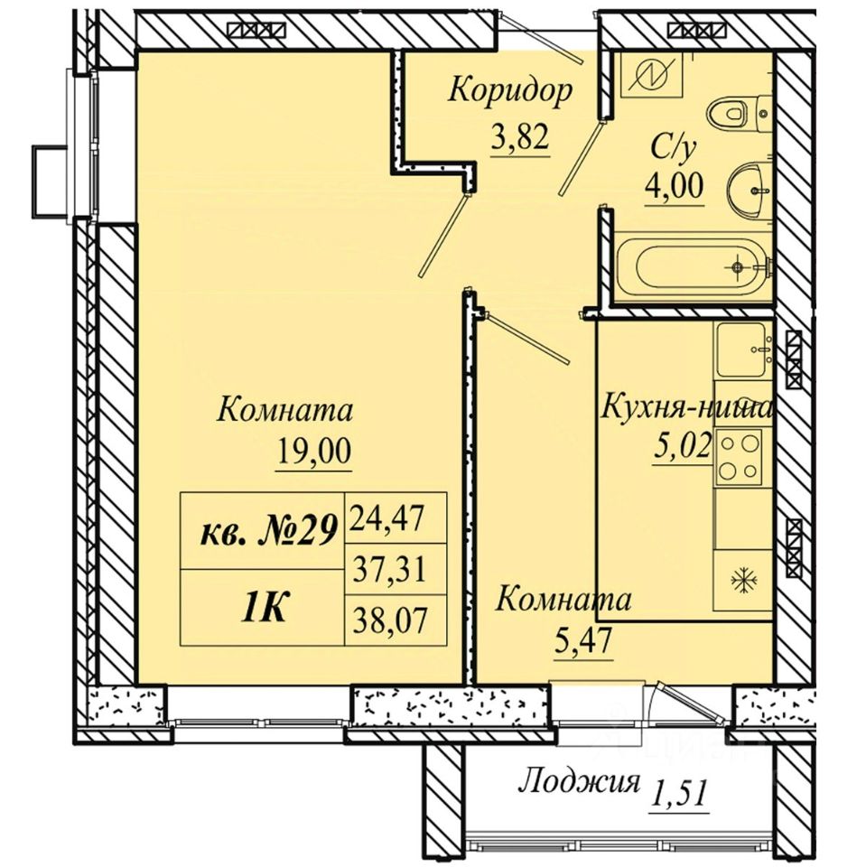 | Площадь общая | 38.1 м² |
