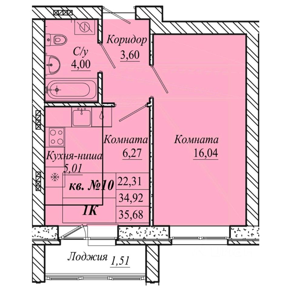 Площадь общая35.7 м²