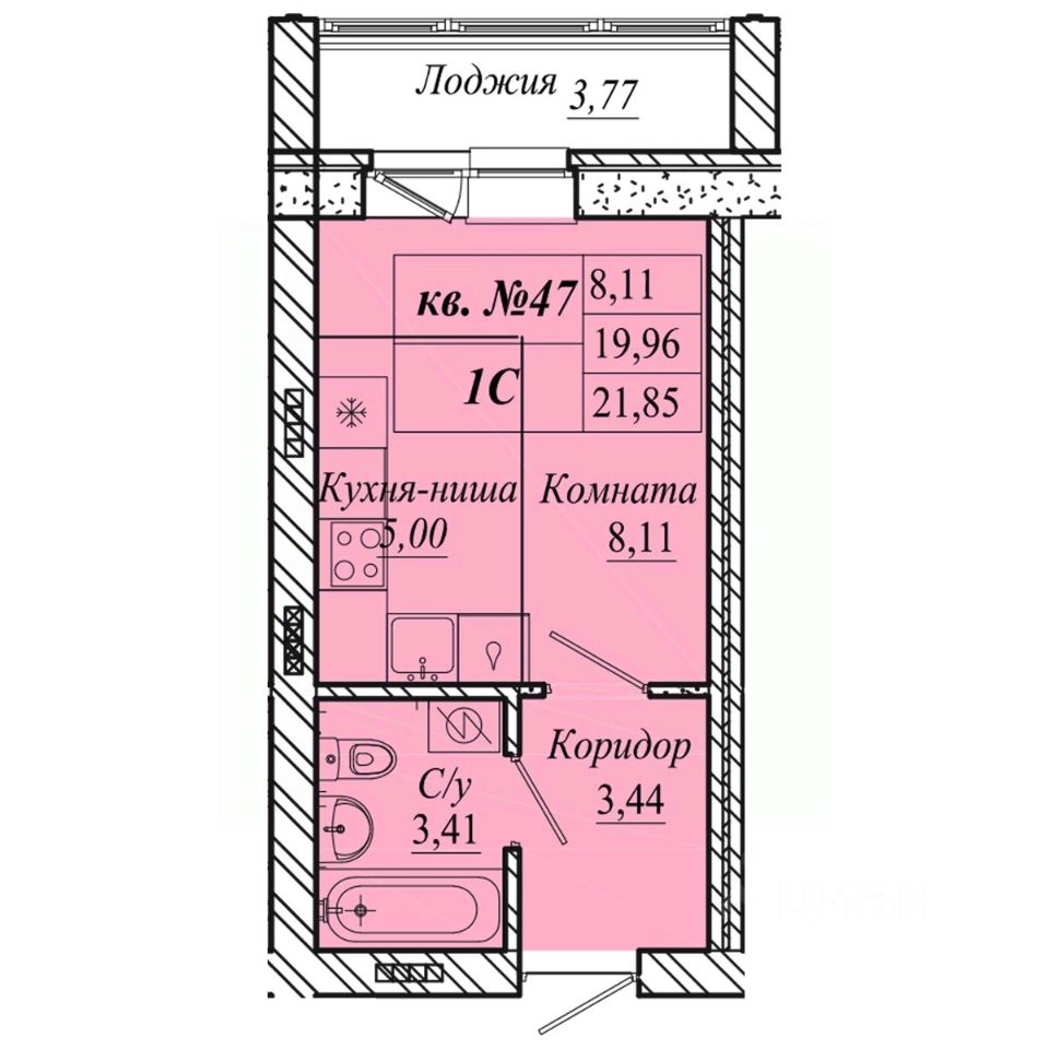 | Площадь общая | 21.8 м² |