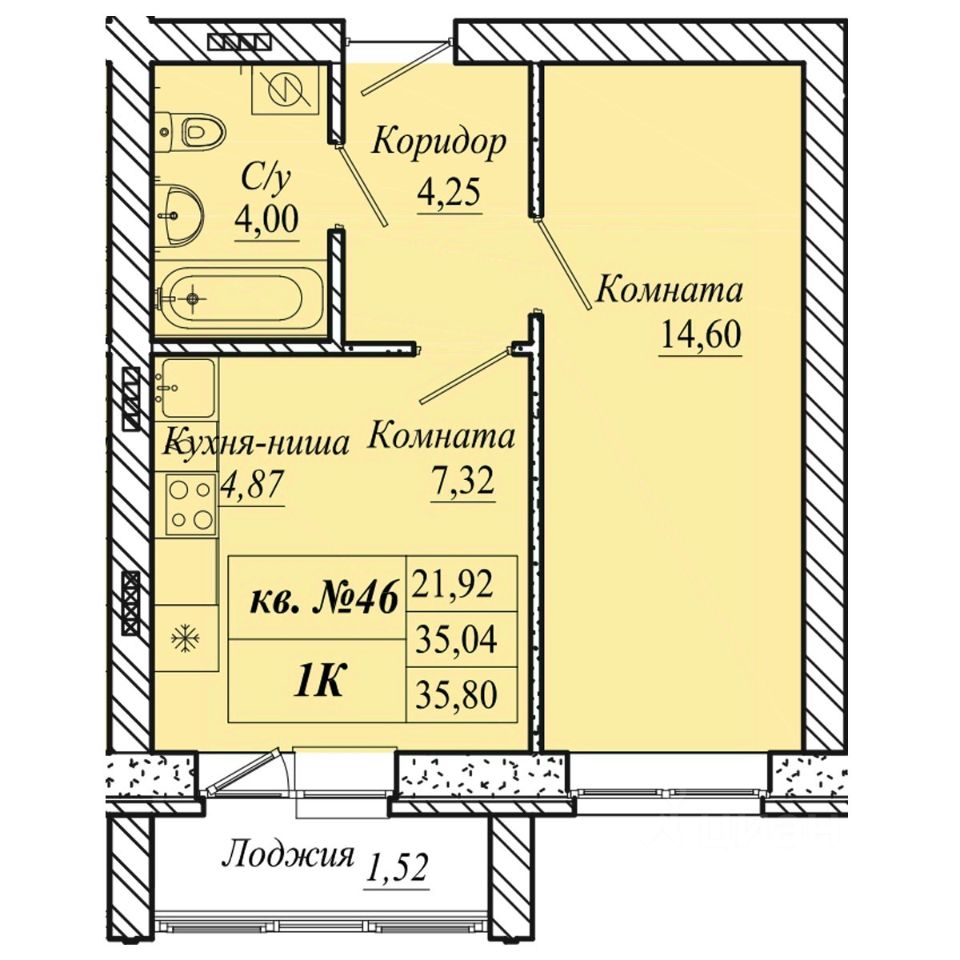 Площадь общая35.8 м²