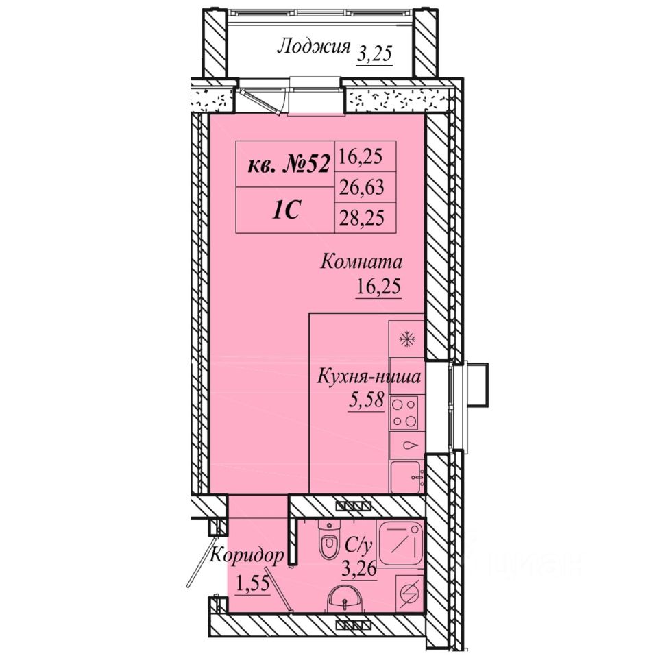 | Площадь общая | 28.3 м² |