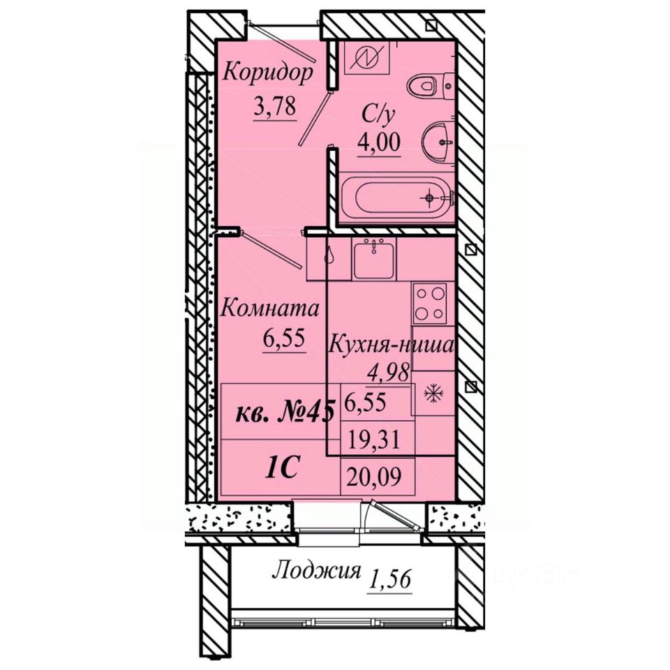 | Площадь общая | 20.1 м² |