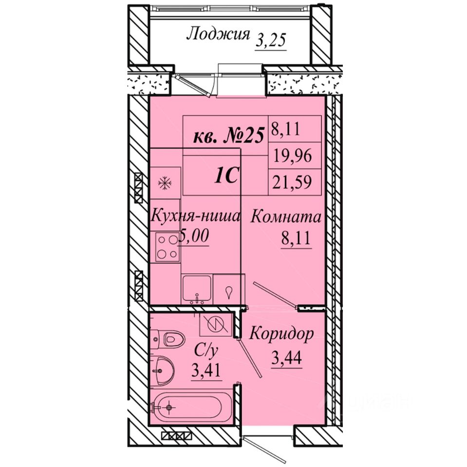 | Площадь общая | 21.6 м² |