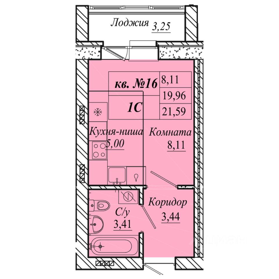 | Площадь общая | 21.6 м² |