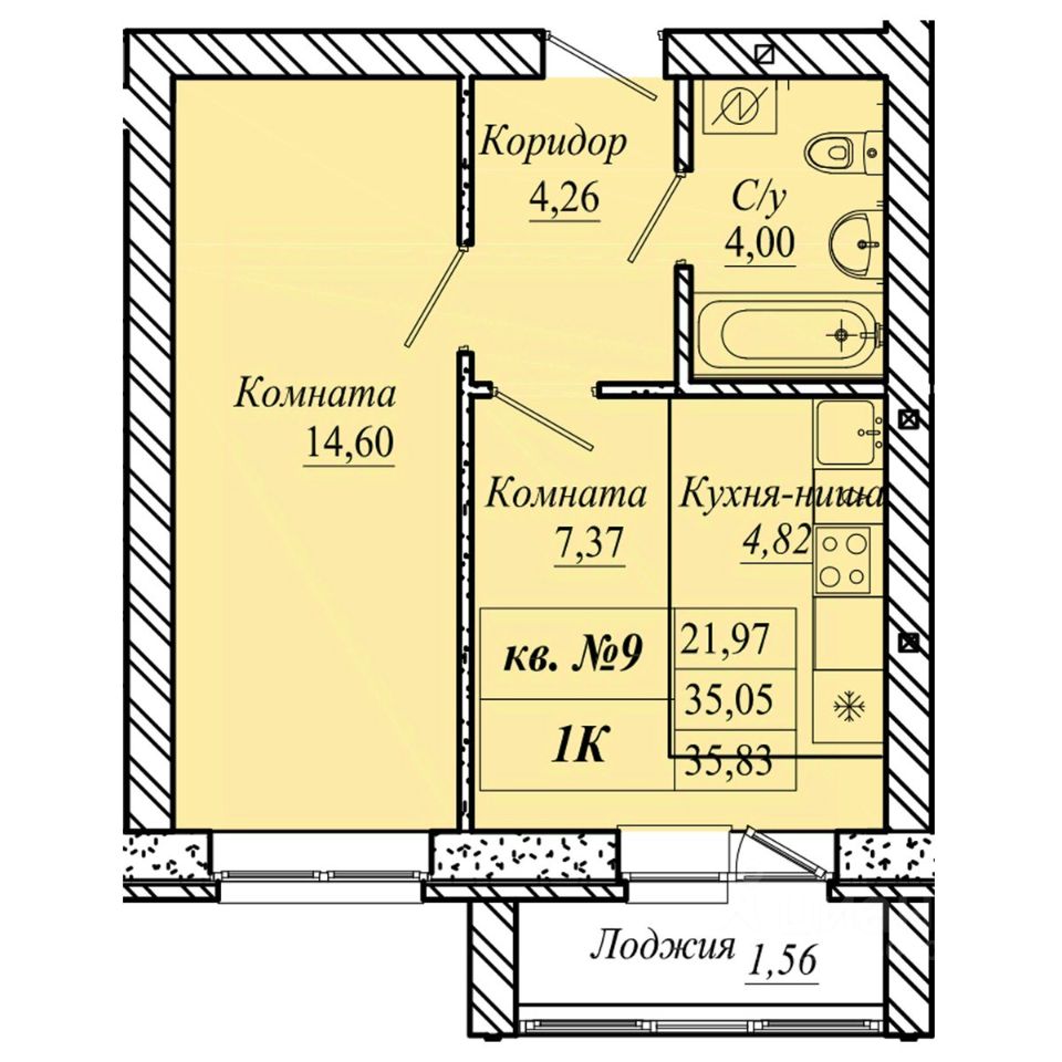 | Площадь общая | 35.8 м² |