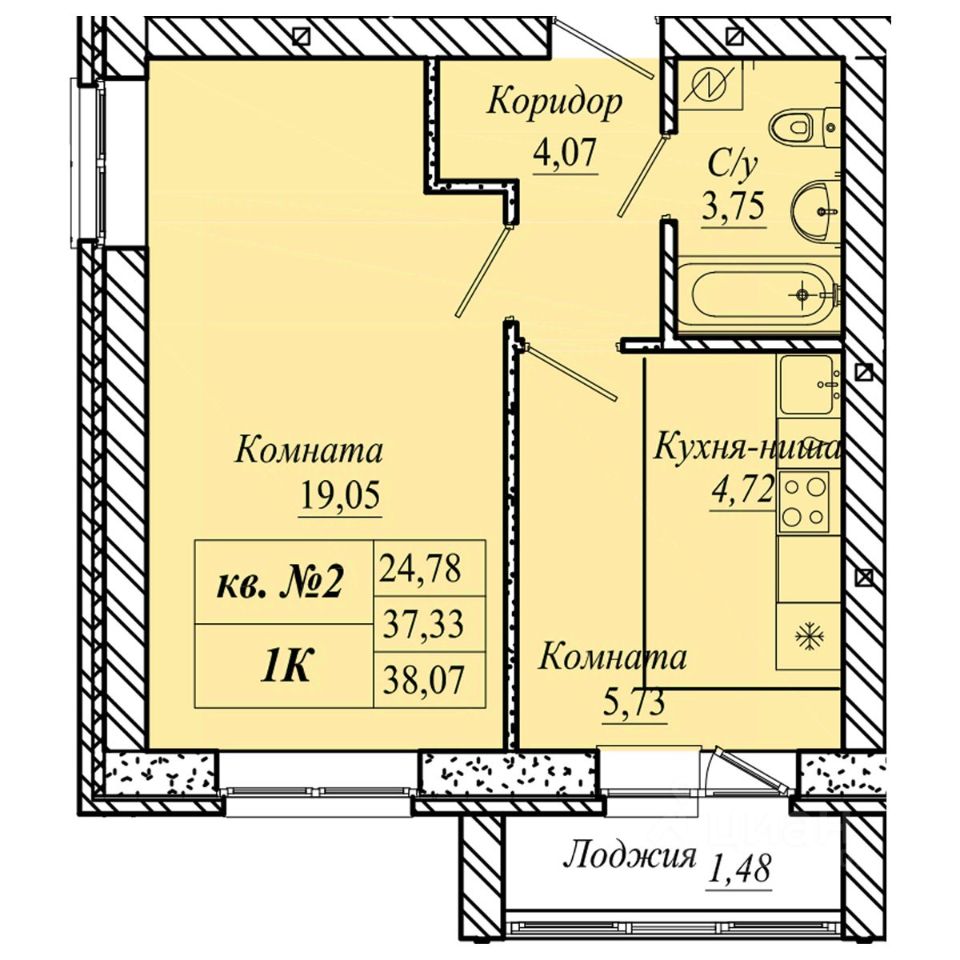 | Площадь общая | 38.1 м² |