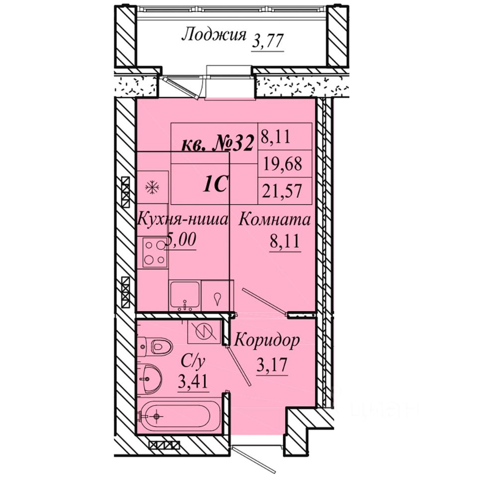 | Площадь общая | 21.6 м² |