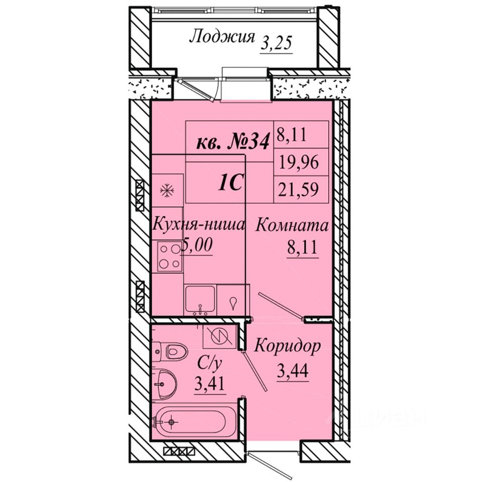 | Площадь общая | 21.6 м² |
