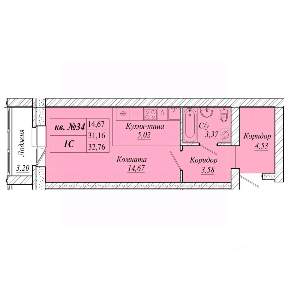 | Площадь общая | 32.8 м² |