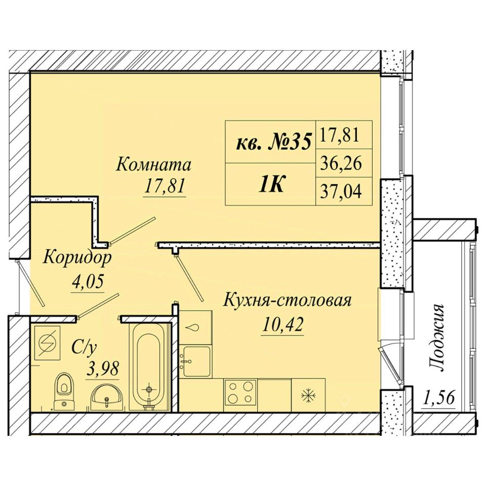 | Площадь общая | 37 м² |
