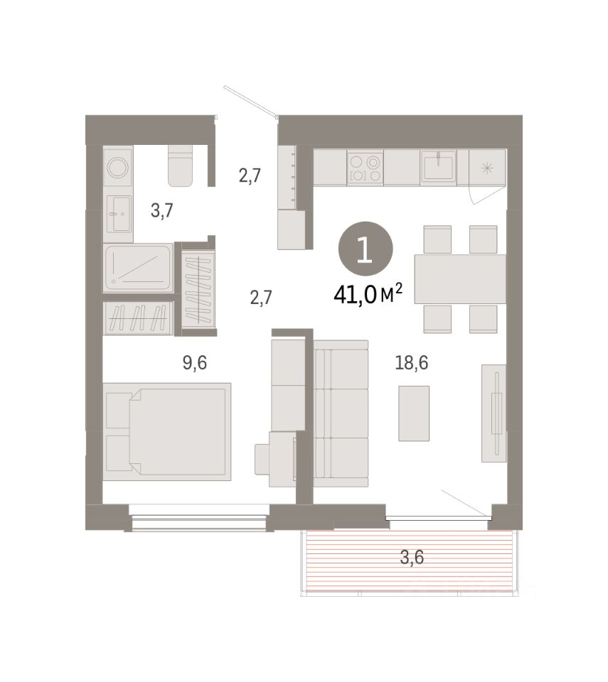 Однокомнатная квартира от застройщика с предчистовой отделкой в Кварталы Драверта на 4 этаже. Общая площадь: 40.99 кв.м. Высота потолков 2.82 м.