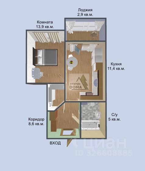 - отдельная спальня 13,9 м²