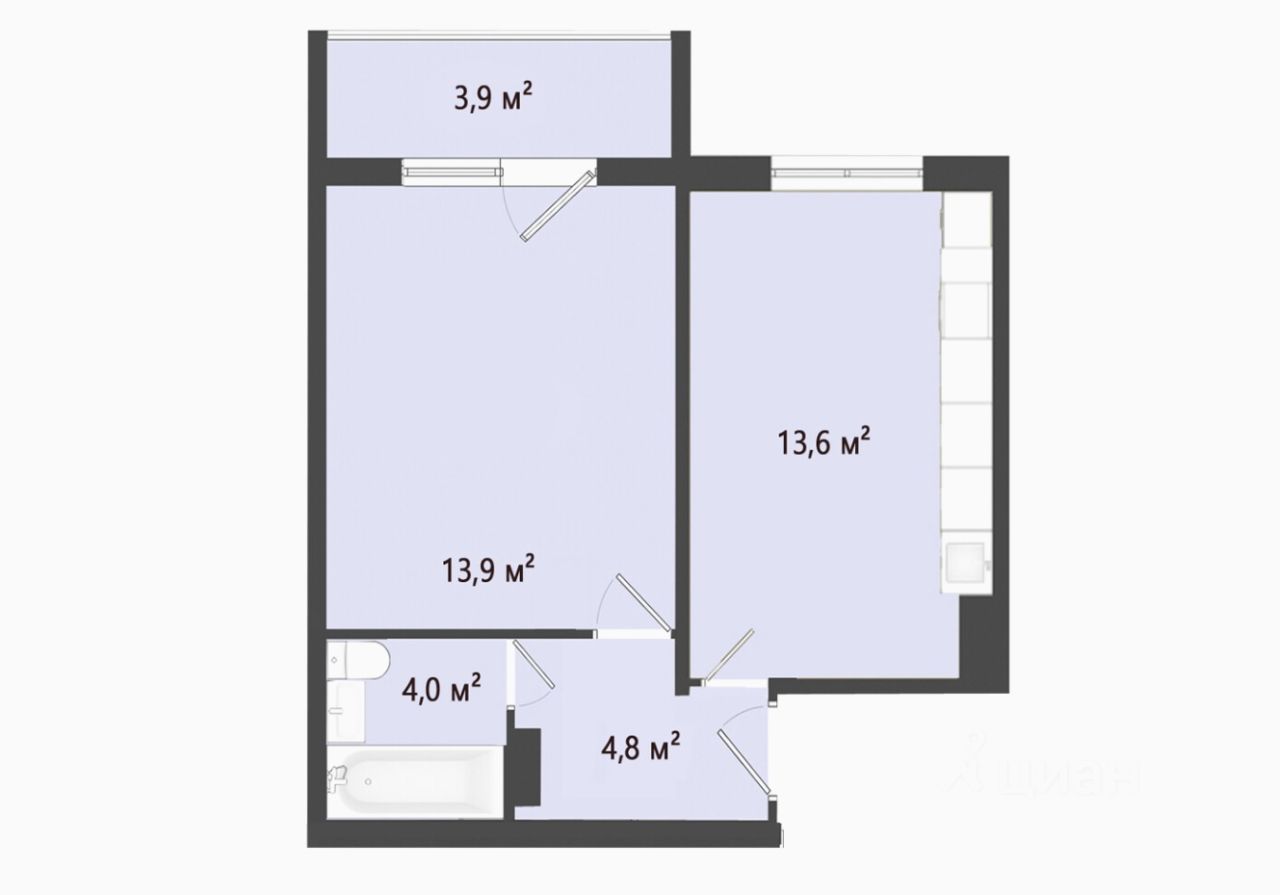 Удобная планировка: кухня 14 кв.м, комната с выходом на застекленную лоджию. Вид из окон во двор на детскую площадку.