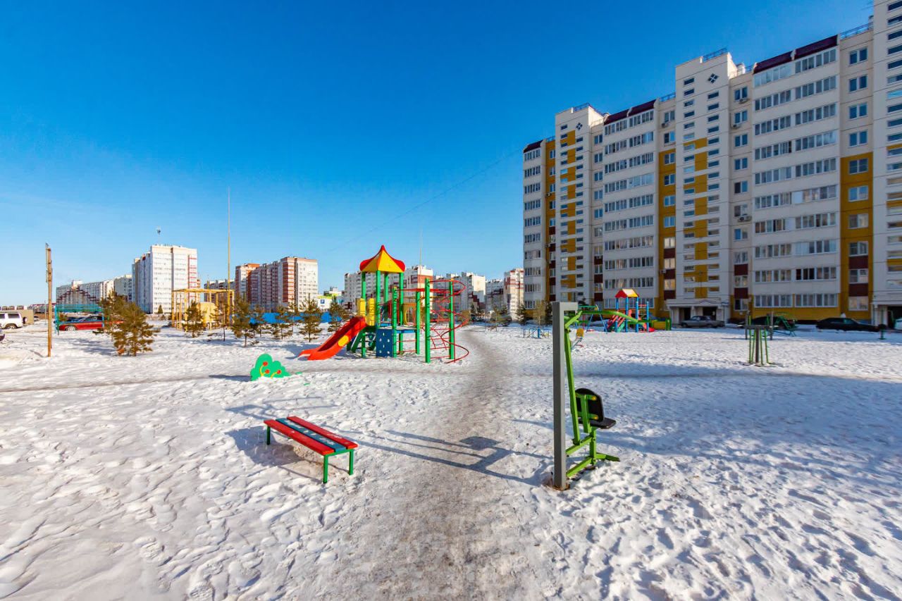 Дом окружён ухоженным придомовым пространством с современной детской игровой зоной, создающей комфортные условия для отдыха семей с детьми. Подъезды содержатся в чистоте и порядке, что добавляет комфорта проживания.
