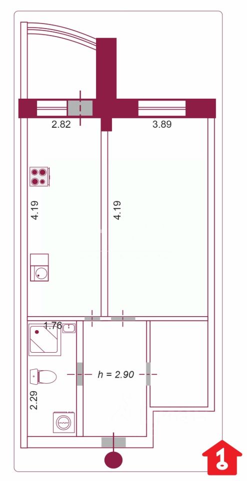Расположена на третьем этаже восьмиэтажного кирпичного дома. Окна квартиры выходят во двор. Высота потолков 2,90 кв.м.